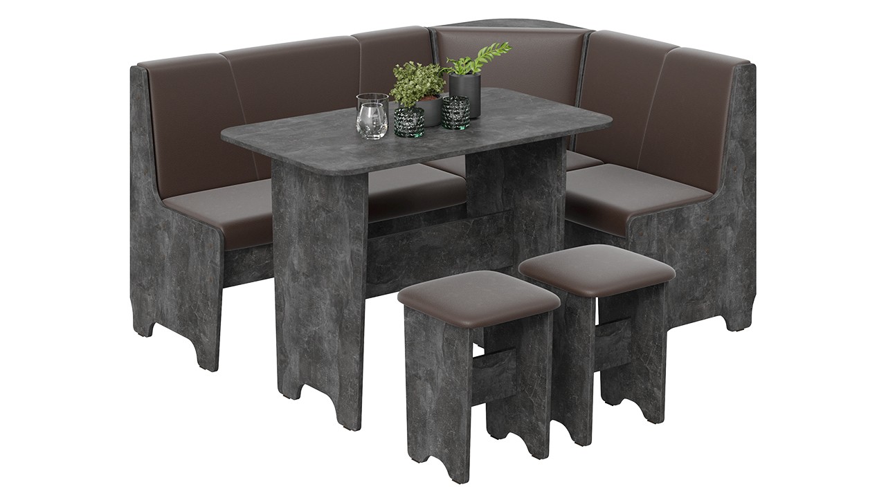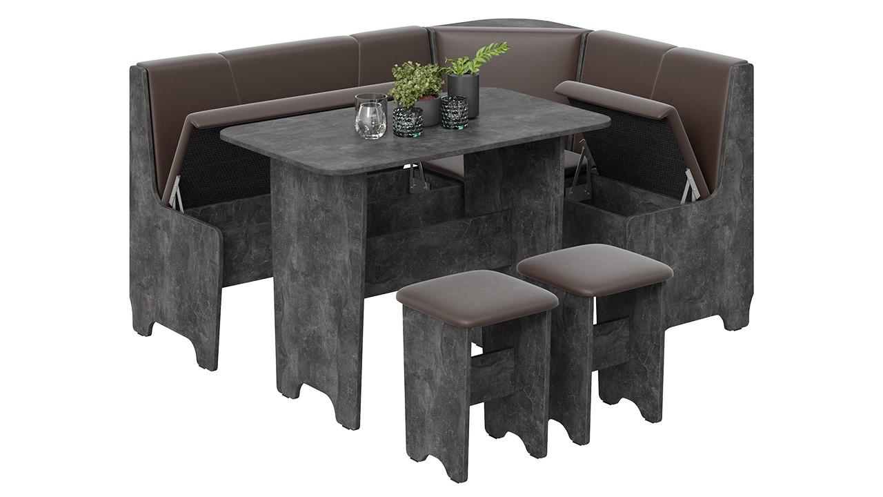 - Обеденная зона "Техас" состоит из удобной угловой скамьи, практичного стола и компактных табуретов.